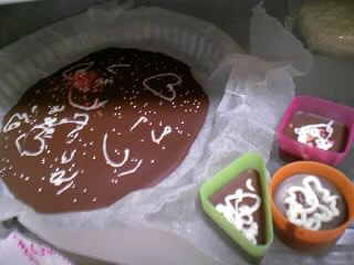 最後の方では、家庭で「チョコレートを溶かして、好きな型に入れて冷やし固める」写真が…。